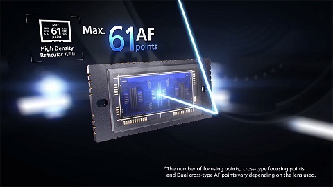 Vùng lấy nét tự động được mở rộng lên 61 điểm ở f/8 hứa hẹn khả năng lấy nét cao giúp nhiếp ảnh gia lấy nét được các vật thể từ xa.