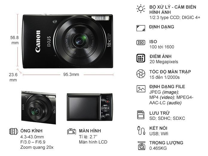 Với cảm biến 20.0 megapixel và zoom quang học 10x mạnh mẽ trong thân máy nguyên khối này, IXUS 190 giúp người dùng chụp hỉnh ảnh và ghi video chất lượng ở đúng thời điểm. Được trang bị khả năng ổn định hình ảnh quang học để giảm rung lắc máy ảnh và chế độ tự động thông minh lựa chọn cài đặt máy ảnh hoàn hảo cho bạn dựa trên quang cảnh, giờ đây bạn có thể chụp những hình ảnh tuyệt vời một cách dễ dàng.