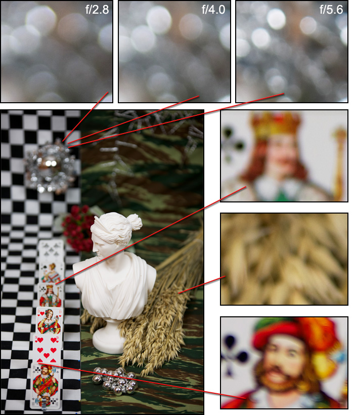 Nhờ 9 lá khẩu tròn, nên vùng highlights tròn và sáng trong suốt các khẩu và dải zoom ngoại trừ phần viền hình ảnh do sự ảnh hưởng của hiện tượng tối góc. Ở những khẩu lớn cho thì hình ảnh rất mịn không hề có hiện tượng "thô"(outlining) xảy ra.